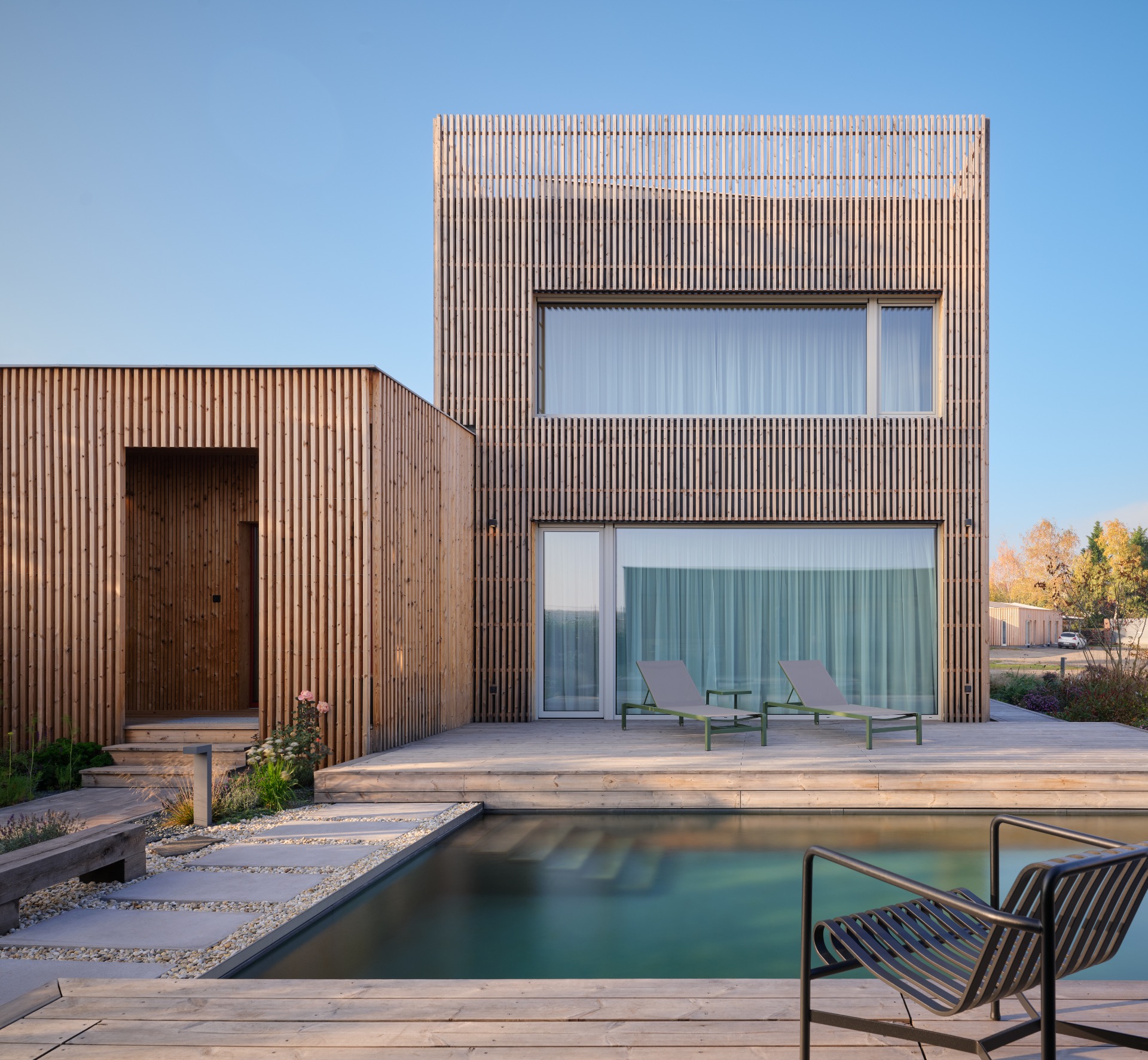 Tento pasivní dům v Pohořelicích u Zlína byl navržen jako rámová dřevostavba opláštěná deskami na bázi dřeva. Izolace stavby je řešena především minerální vatou, zatímco střecha je zateplena foukanou celulózou mezi dřevěnými vazníky. Tým Evora se staral o projekt, dodávku a montáž vzduchotechniky.